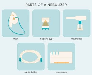 A nebuliser has three main parts: a compressor, tubing, and a medicine cup. Here’s how it works: